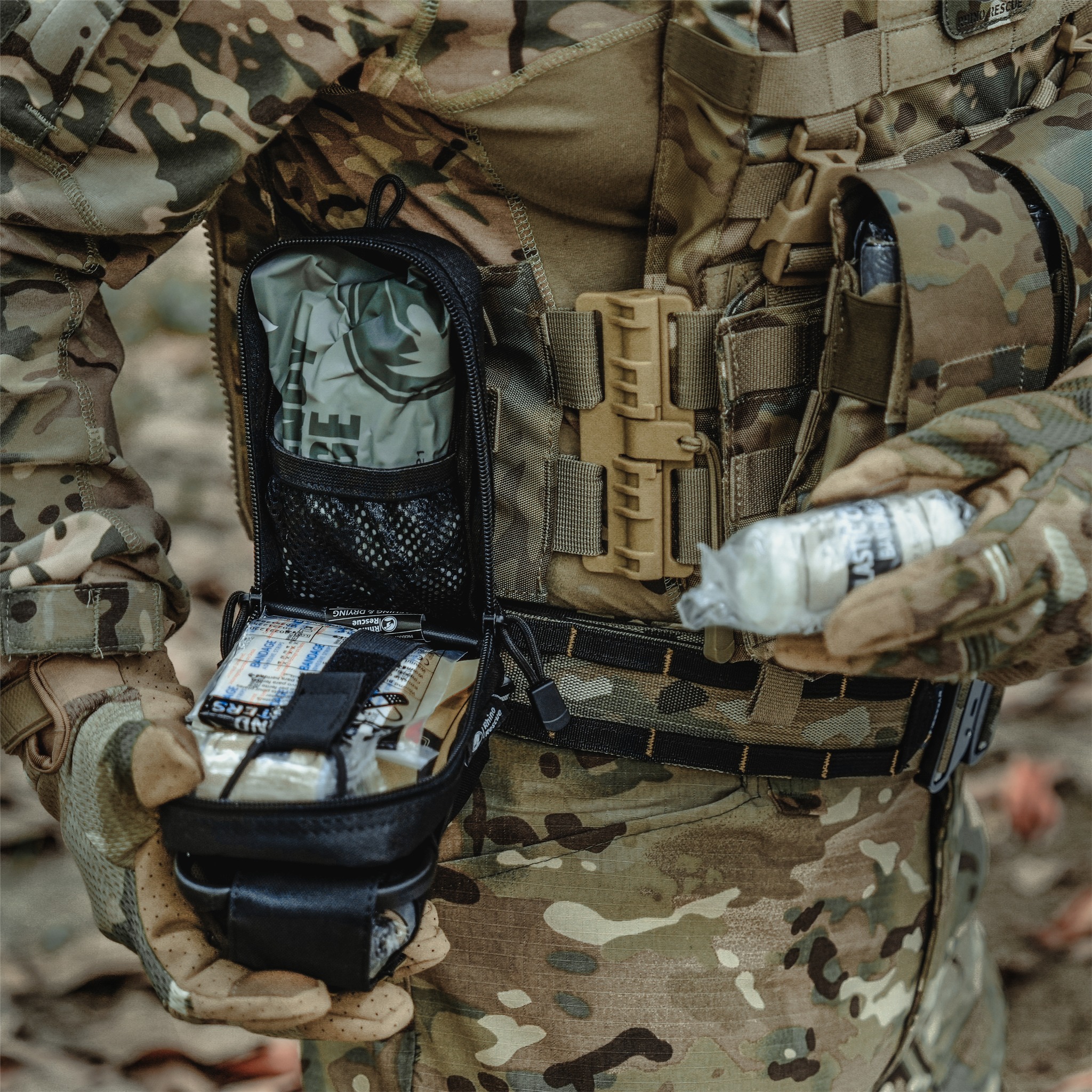 This kit is designed for rapid response to personal injuries sustained during combat, tactical missions, or search and rescue operations.